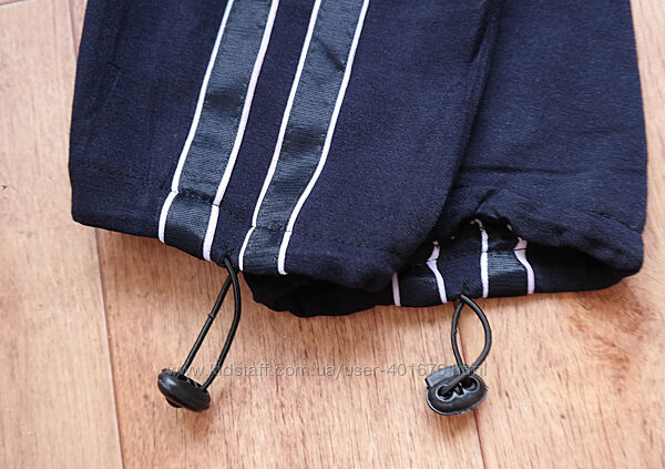 По талии на резинке, регулируется шнурком, карманы по бокам на молнии. Штанина внизу на кулиске.