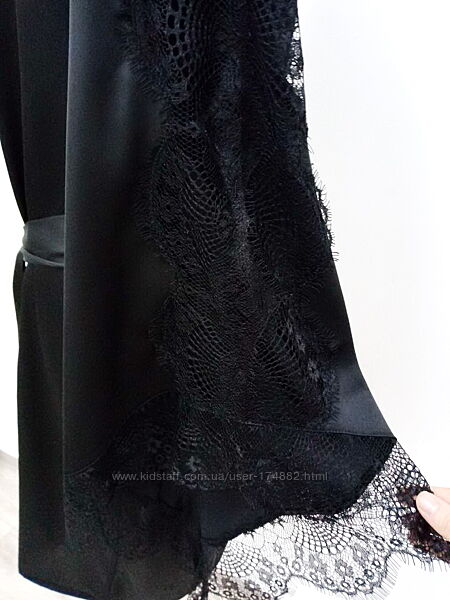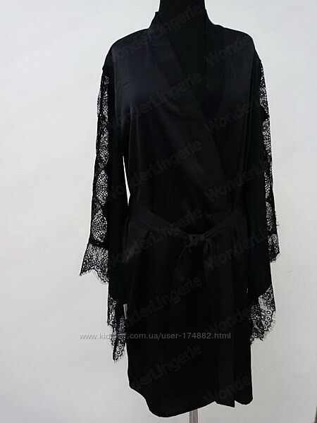 Подробное описание: Халат serenade 311 чорний шовковий халат з мереживом широкий рукав