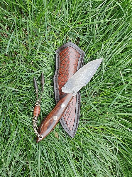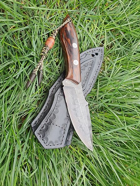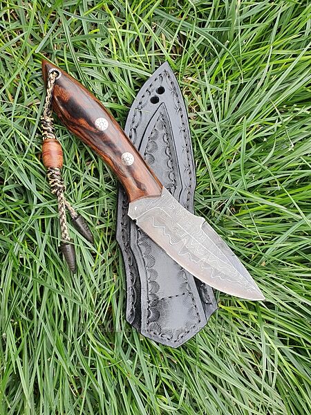 Стильний кованый нож hand made дамаская сталь ножны кожа подарок