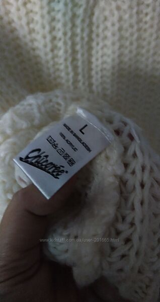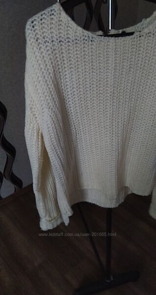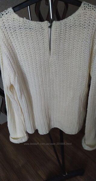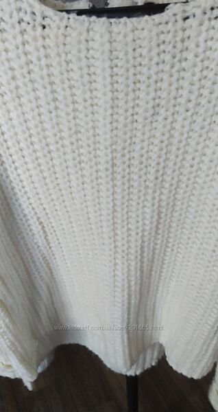 Продаю свитер крупной вязки, молочного цвета, сзади молния, размер Л. Длина спинки 62 см, переда 60 см, от подмышки до подмышки 58 см, в самом низу ширина 60 см.