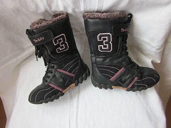 Сапоги для девочки Teddy, кожаные, демисезонные на шнурках и молнии.Износ минимальный.
