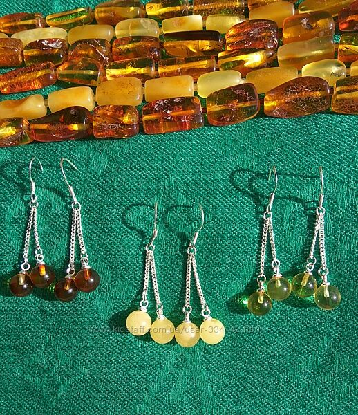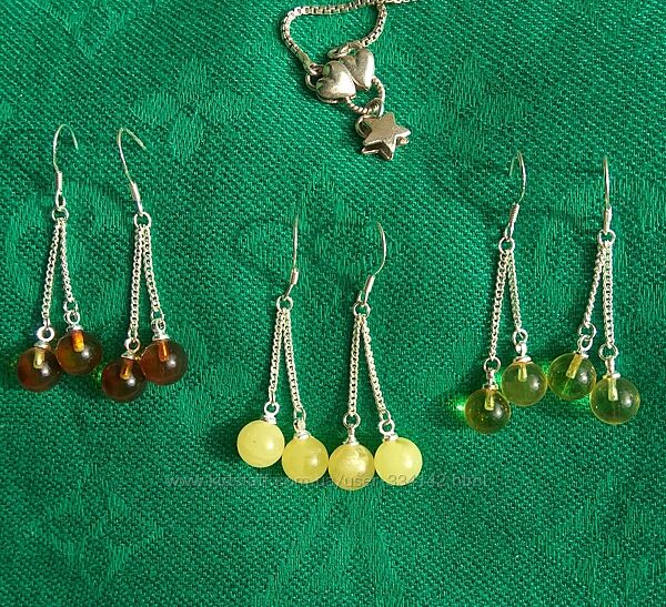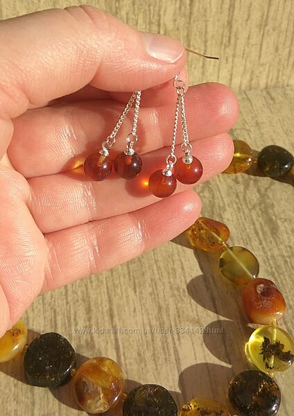 Легкие элегантные серьги с натуральным украинским янтарем на серебристых цепочках - красивый аксессуар, великолепно дополняющий как классический, так и романтический образ.Круглые янтарные бусины очень красиво играют на солнце, делая это лаконичное и стильное украшение нарядным и оригинальным. А тонкие серебристые цепочки, удлиняющие и облегчающие дизайн серег, подчеркнут изящную линию шеи.