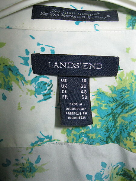 LANDS END Размер US - 18 UK - 20 Рубашка чуть приталенная Пуговки брендированы ПОГ - 60cм ПОТ - 57см Плечо - 14см Длина рукава - 63см Длина по спинке - 70см 100% cotton , плотненький
