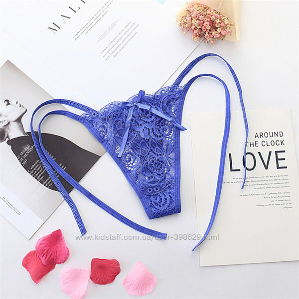 Прозрачные ажурные трусики с цветочным принтом и с завязками по бокам.А любые завязки созданы для того, чтобы кто-то их развязал.