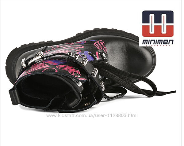Ботинки Minimen для девочек. Изумительные ботиночки для ваших модниц подойдут как под платье, так и под штанишки. Благодаря шнуровке и плотной фиксации на ноге подойдут для ножек разной полноты и подъема. Стопа вашей девочки в этих ботинках будет правильно зафиксирована, что добавит удобства и комфорта. Натуральная кожа премиум качества снаружи и тепленький коттон внутри - эта комбинация позволит ребёнку в холодный период чувствовать себя в тепле даже в дождливую и холодную погоду. Антибактериальная ортопедическая стелька и жесткий задник.- Изготовленные полностью из натуральной кожи премиум качества