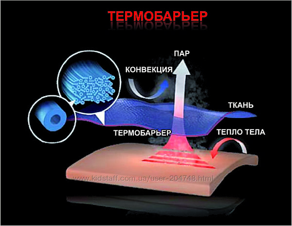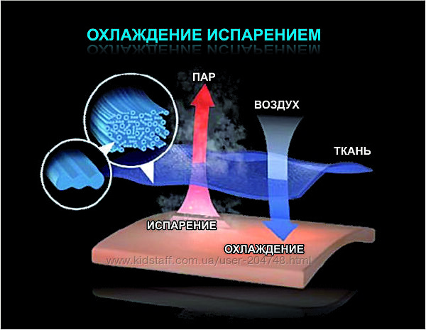 При нагрузке тело человека нагревается и выделяет пот, который при испарении охлаждает тело и температура остается постоянной. Обычная одежда препятствует выделению тепла в окружающую среду и человеку становится жарко. Волокно термобелья имеет плоскую форму с множеством продольных канавок для увеличения площади поверхности волокна, что позволяет за счет капиллярного эффекта очень быстро впитывать пот с поверхности кожи и выводить его на внешнюю поверхность ткани, где увеличенная площадь поверхности обеспечивает более быстрое испарение. Разгоряченное тело охлаждается, а внутренняя поверхность ткани всегда остается сухой и приятной к телу.