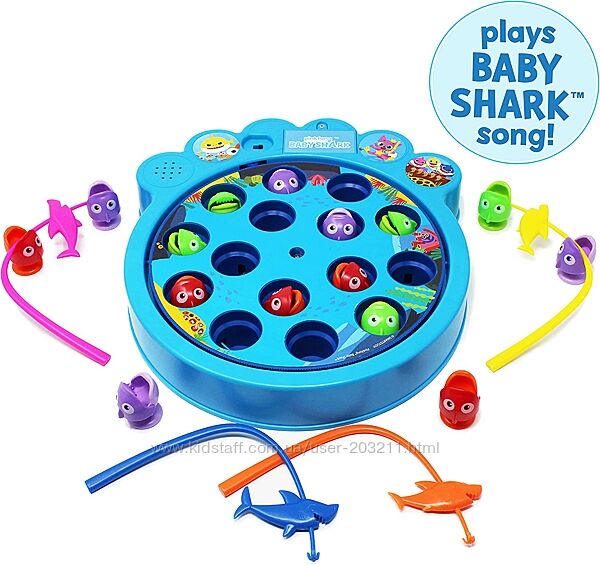 Візьміть вудки та разом із улюбленою в усьому світі сім´єю акул (мамою, татом, бабусею, дідусем і малюком) починайте захоплюючу риболовлю. Виграє той гравець, хто витягне найбільшу кількість рибок!