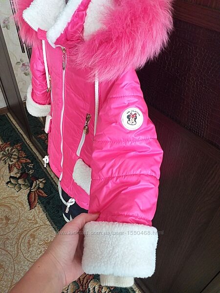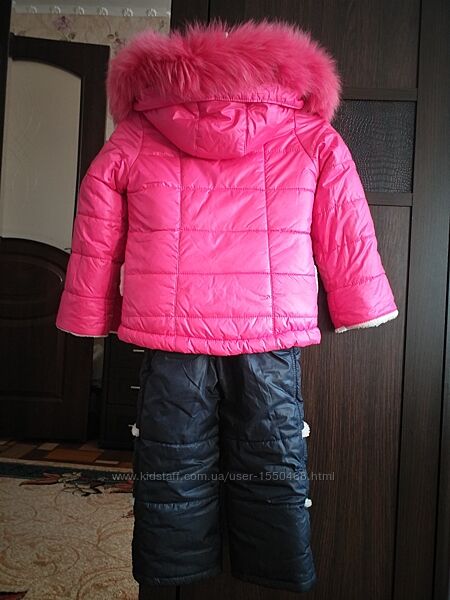 робочому стані. Комбінезон в ідеальному стані (як новенький, одягали 2-3 рази, видно за станом білого хутра, дивіться фото). Курточка в хорошому стані, хутро на капюшоні пухнаста. Комплект теплий, зручний, красиво виглядає на дитині, ми залишилися дуже задоволені.