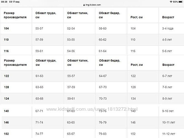 | Рост | 92 см, 98 см, 104 см, 116 см, 122 см, 128 см |