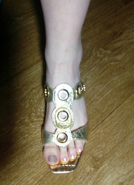 Подробное описание: Золотистые кожаные босоножки, шлепки Brretti. 36-размер. 23 см. Новые.