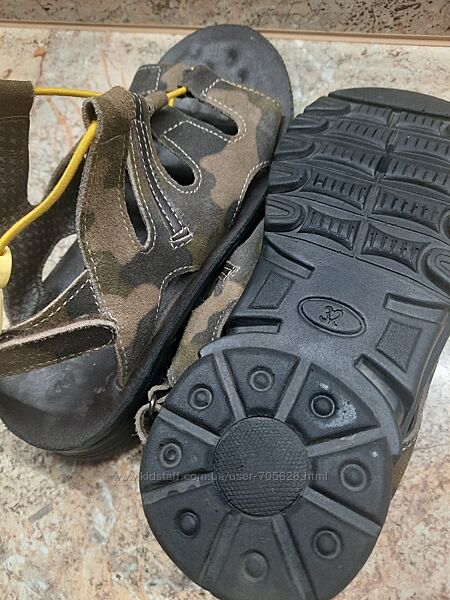 Продам отличные полностью кожаные босоножки на мальчика 32р., длина стельки от края до края =22см. Производство Украина. Качество неубиваемое! Практически новые, очень мало были в эксплуатации, быстро пролетели размер. Произведены литьевым методом, при котором низ обуви с помощью пресса крепится к заготовке верха без применения клеящих масс, что позволяет получить товар повышенной износостойкости. Стелька также из натуральной кожи с эффектом микромассажа. На пятках застёжки- липучки. Цвет: камуфляж. Подойдут на ножку любой полноты, т.к. впереди затягиваются с помощью яркой резинки с фиксатором. Ребристая подошва создаёт комфорт и лёгкость при ходьбе по неровной поверхности.299грн.