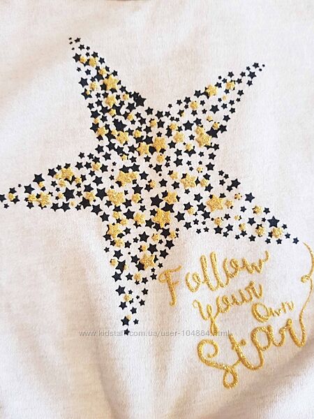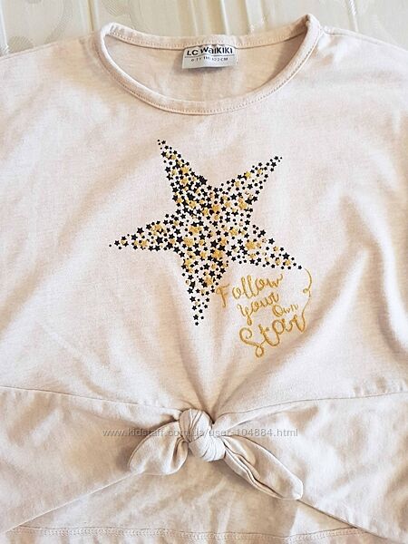 Реглан фирмы LC Waikiki; бежевого цвета в черно-золотые звезды; укороченный, завязывается спереди на узел.Замеры: длина – 36 см, ширина подмышками – 39 см, длина рукава от шеи – 46 см.