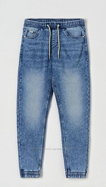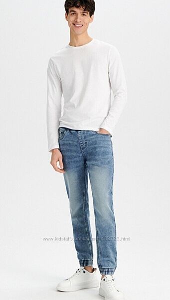 Фото 5, 6 - Підліткові джинсові джогери для хлопчика від Sinsay. Розмір 28, гарно сядуть на р. 164-170. Колір блакитний.Тканина середньої щільності, підуть на весну-літо.Довжина 93 см, кроковий 70 см, ширина в стегнах 51 см, ширина в талії не розтягуючи 37 см, тягнеться до 45 см. Тканина сама по собі трохи тягнеться.