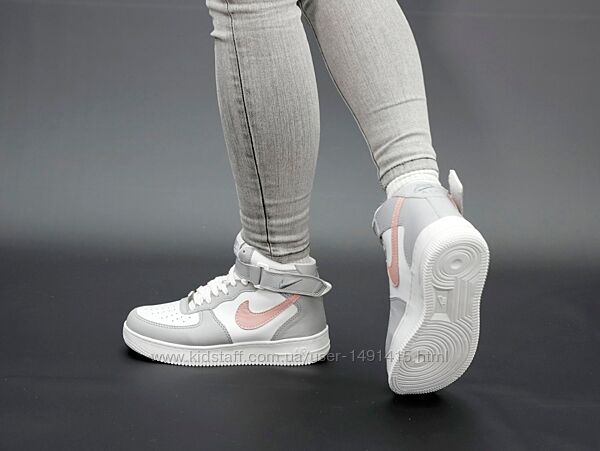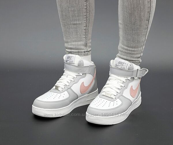 Подробное описание: Зимние женские кроссовки ботинки Nike Air Force HI. Grey. С МЕХОМ.