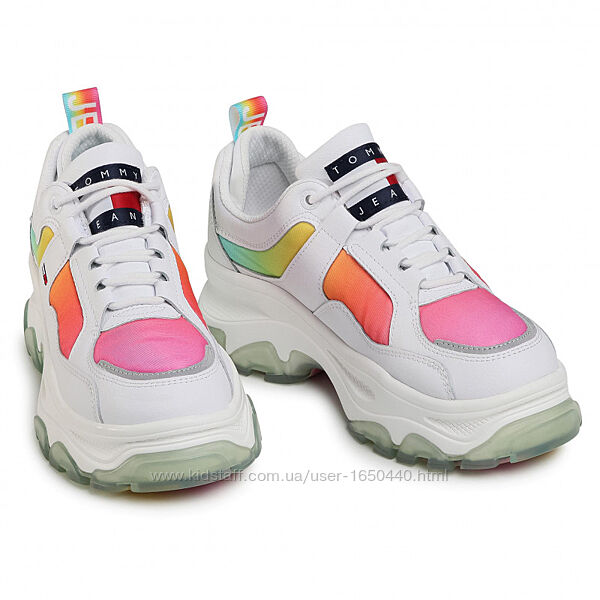 Кожаные женские кроссовки на платформе Tommy Hilfiger Томми Хилфигер Оригинал (Размер US 9 - 26 см)Women´s White Degrade Flatform RunningЖенские кроссовки на платформе Tommy Hilfiger.