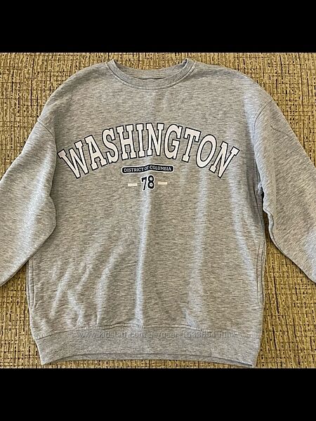 Світшот сірий розмір вказаний 140 лежить як оверсайз теж з насосом довжина 57 см ширина 49 см рукав від горла 59 см від плеча 41см плечі спущені 200грн
