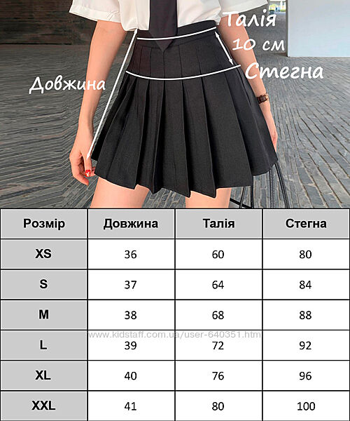 XS: талия 62 см, бёдра 82 см, длина 36 см
