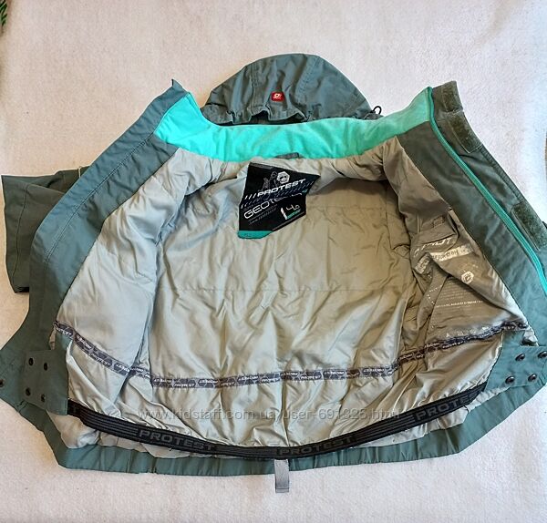 Пропоную зелену термо куртку від Protest. Верх із водостійкої щільної тканини, всередині поліестрова підкладка та тонкий синтепон. Уживана акуратно, стан дуже добрий, дивіться фото.Розмір вказаний на 12 років, зріст 152 см, довжина від плеча до низу 56 см, ширина плечей 45 см, довжина рукава від шиї 65 см, від плеча 51 см, ширина грудей під пахвами 52 см.