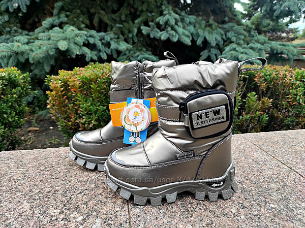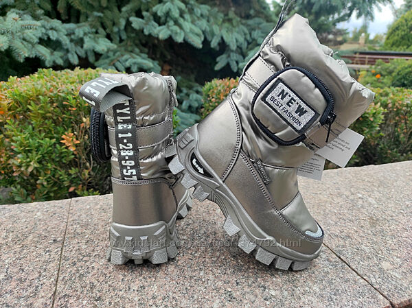 Подробное описание: Зимові дутики, чоботи на дівчинку р-р 28,29, темне срібло tom m
