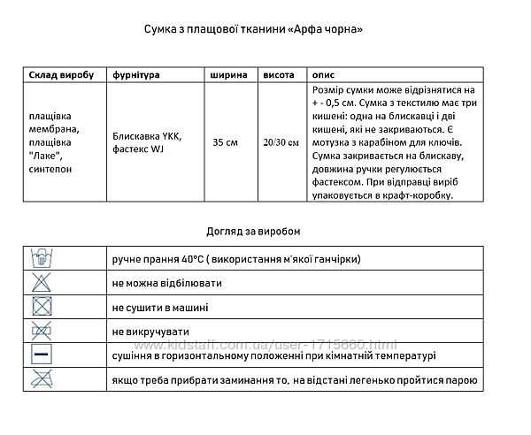 синтепон, смужка з гобелену, блискавка YKK, карабін для ключів WJ. Ширина- 35 см. висота- 20/30 см. Розмір сумки може відрізнятися на + - 0,5 см. Сумка з