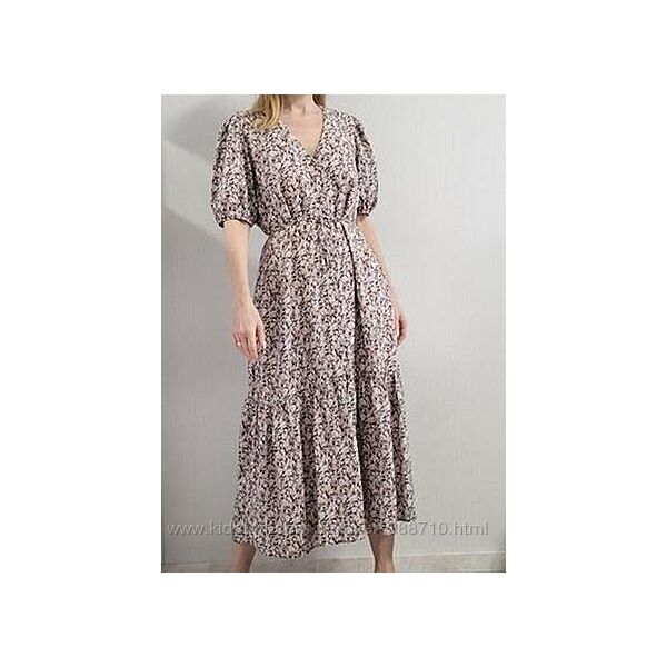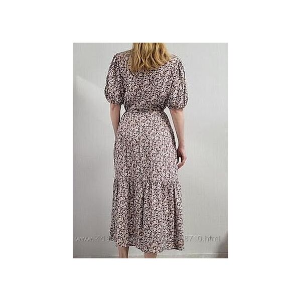 Актуальная модель платья с рукавами буфами Primark 100%вискоза,Р.12-14, L-XL. Полностью на пуговках (есть запасная), двойной поясок, завязывается по желанию-впереди, на спинке, по низу широченный волан. состояние новой вещи. длина 124 грудь 50, талия 45, бедра 62, рук 30.