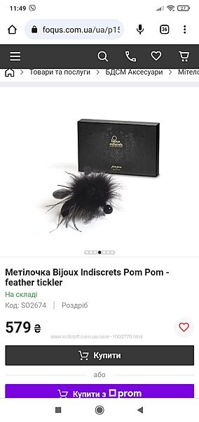 ТОВАР З НІМЕЧЧИНИ. НОВІ, КАРТОНІ КОРОБОЧКИ ТРІШКИ ПРИМ´ЯТІ ПРИ ТРАНСПОРТУВАННІ. ЗАЛИШИЛАСЬ ОСТАННЯ КОРОБОЧКА. ДИВІТЬСЯ БУДЬ ЛАСКА ФОТО-ЦЕ ЧАСТИНКА ОПИСУ. Ціна в інтернет магазинах 579 грн.Мітелочка Bijoux Indiscrets Pom Pom - feather tickler.