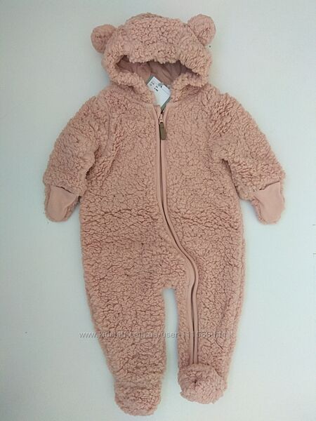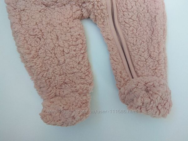 Плюшевий комбінезончик для малюка від H&М. Тканина плюш-тедді, всередині утеплений трикотажною підкладкою, ручки можна відкрити або закрити, є кумедний хвостик. Дуже милий і тепленький.Рожевий: 1-2міс