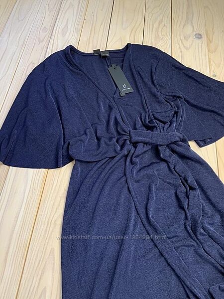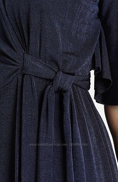 Чудова ошатна сукня міді з ефектом запаху. Тканина якісна, дуже красиво спадає, шикарний темно-синій колір із блискучим переливом. Лягає ідеально, підкреслює всі переваги. Є зав´язка на талії збоку. Красиві вільні рукави. Модель сукні розкішна. Колір як на моделіЗаміри: Пог 44 тягнеться до 65, пот 33 тягнеться до 50, поб 55 тягнеться до 79, довжина 113, рукав 32