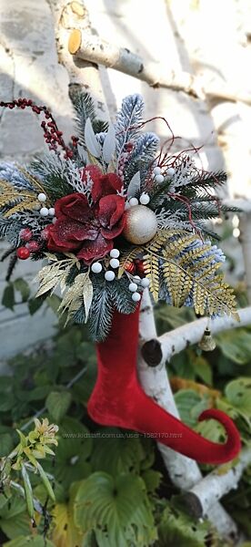 Казковий новорічний башмачок декоровано у класичних кольорах-червоний, золотий та білий. Засніжені шипшина та хвоя, червона магнолія та золоті гілочки-це справжньє відчуття новорічної атмосфери. Башмачок виконано з м´ягенької велюрової тканини, отороченний зверху штучним білим хутром. Оплата-100% на картку або післяплата (передоплата 200грн.). Доставка за рахунок отримувача: бажано Новою Поштою, Укрпоштою (інші варіанти під час обговорення). Зроблено з любов´ю та гарним настроєм. Повернення немає.Сказочный новогодний башмачок декорирован в классических цветах – красный, золотой и белый. Заснеженные шиповник и хвоя, красная магнолия и золотые веточки – это настоящее ощущение новогодней атмосферы. Башмачок выполнен из мягкой велюровой ткани, оторочен сверху искусственным белым мехом. Оплата-100% на карту или наложенный платеж (предоплата 200грн.). Доставка за счет получателя: желательно Новой Почтой (другие варианты при обсуждении). Сделано с любовью и хорошим настроением. Возврата нет.