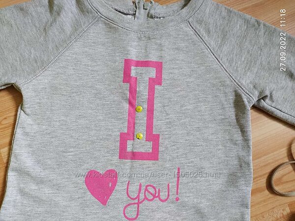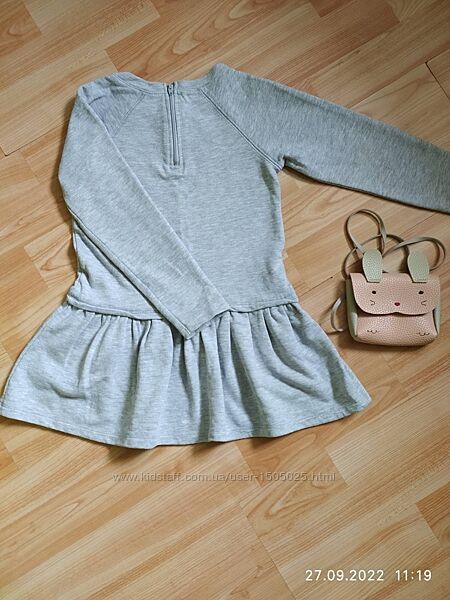 Фірмове, тепле плаття на ріст 110 см. Тканина двухнитка. З дефектів на кнопочках спереді трішки потерлась фарба (фото 3 показала) в остальному все добре, без пятен, дір. При бажанні можна обновити лаком кнопочки. На спинці біля горловини замочок, для зручності одягання. Орієнтуйтесь на заміри, дітки різні.Довжина 54 см.