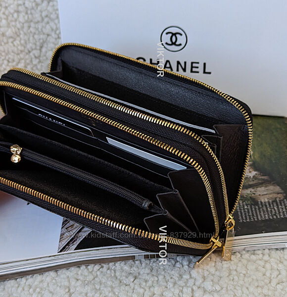 Подробное описание: Кожаный женский кошелек CHANEL на две молнии. Шкіряний гаманець