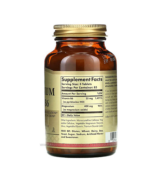 Подробное описание: Solgar, магній з вітаміном В6, 100/250 таблеток