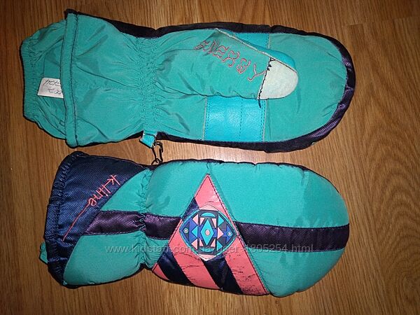 Перчатки рукавицы лыжные 5,5р. бирюзовые с кожаной ладонью