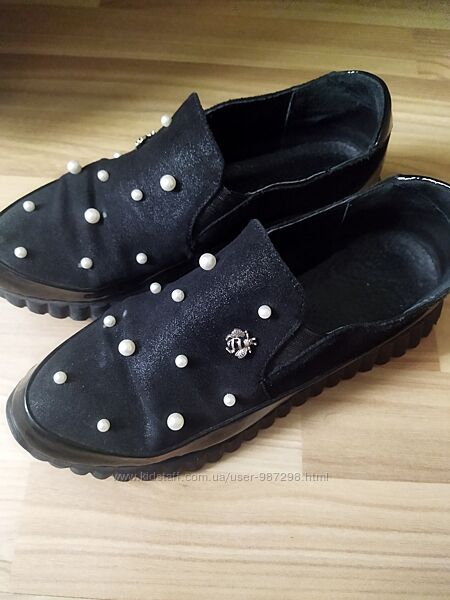 Шкіряні( комбінація лак+сатин),добротні туфельки-лофери оздоблені перлинами,класно виглядають на ніжці.Розмір 38,по устілці 25,2.Стан дуже хороший,ношені мало.Другие объявления продавца