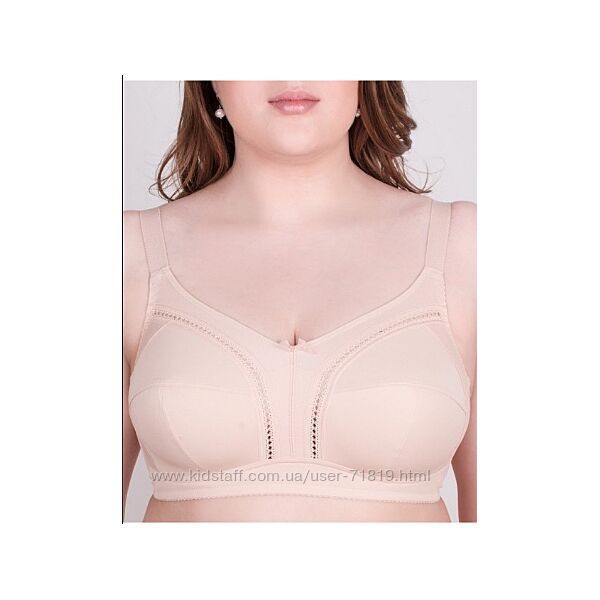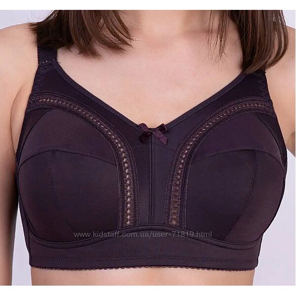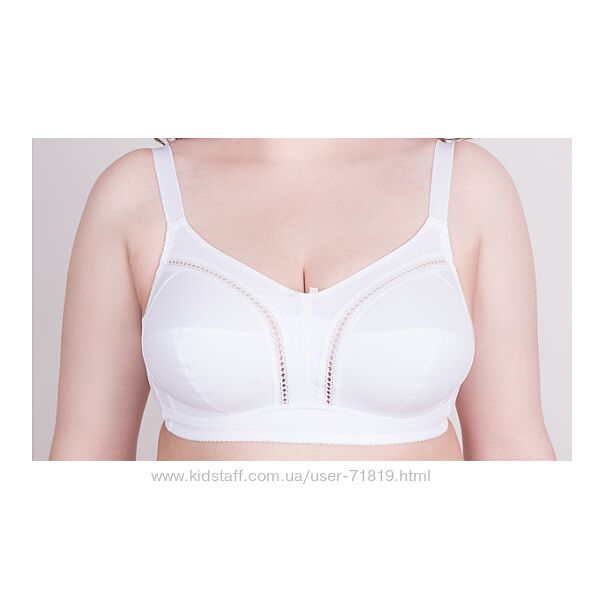 Бюстгальтер из эластичного полотна, трикотажного полотна и ламинированного полотна с хлопком на нижних и боковых деталях чашки. Без каркасов. Расширенная бретель. Отделка - тесьма с эффектом "мережки" и бантик на центральной детали бюстгальтера.Размерный ряд : 75 DEF, 80 - 85 CDEF, 90 - 95 BCDE