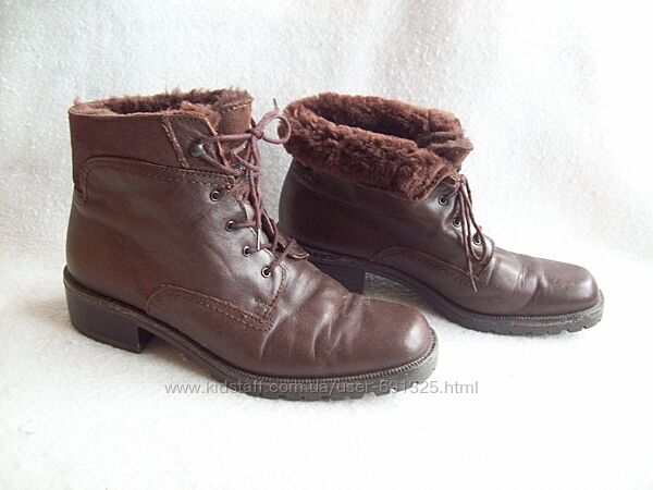 Пропоную коричневі зимові черевики з натуральної шкіри та хутра . Вживані мало, акуратно, стан дуже хороший, дефектів немає.Розмір вказаний 37, довжина устілки всередині 24,3 см, ширина 8 см, каблук 3,5 см. Вузький носок.