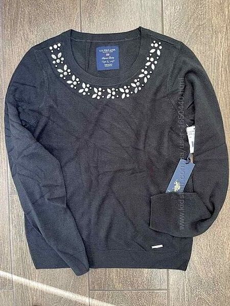 Легкий черный свитерок с камнями свитер US POLO Юс Поло Размер L ОригиналУютный и роскошный свитер US POLO модного дизайна с классическим вырезом под горло и украшенный узором из камней . Размер L Оригинал