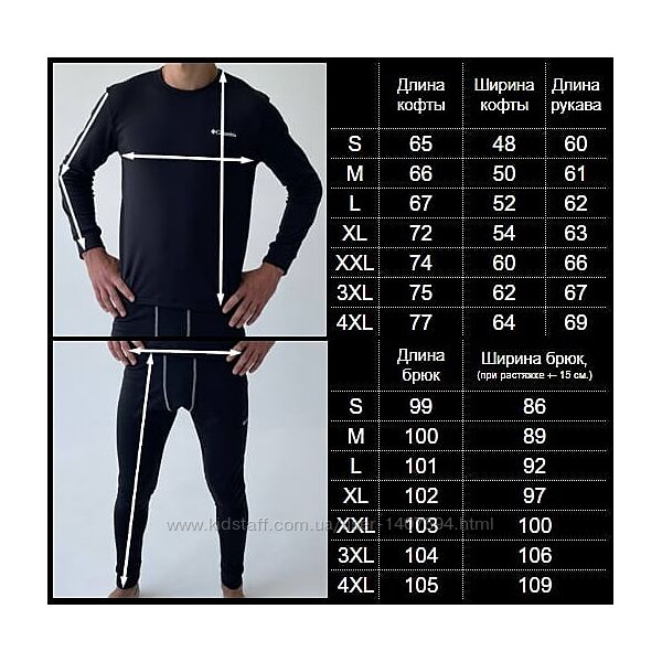 Сохранение комфортной температуры тела. Баланс теплаУдобный пошив.Есть также: ХХХЛ и ХХХХЛ - цена стоит дороже на +60 грн - уточнять наличие дополнительно ПЕРЕД ЗАКАЗОМ!!!Свойства термобелья: