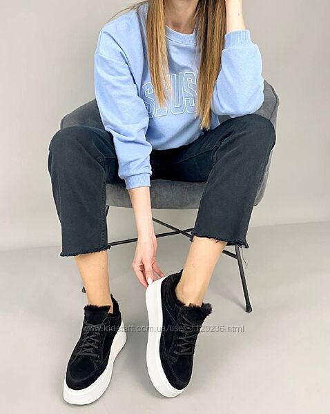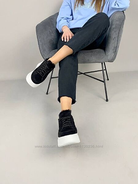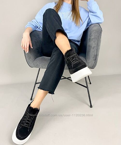 Кеды женские замшевые черные на белой подошве на цигейкеСезон: зима