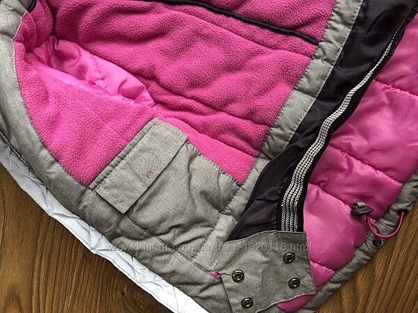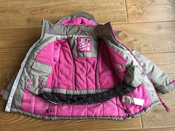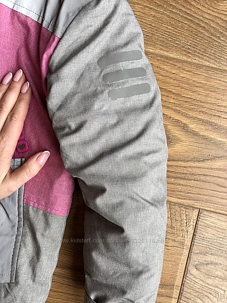 Дуже класна куртка, тепла. Має регулюючі манжети на рукавах, захисну спідницю в середині, замки всі оброблені і захищені від вологи та вітру. Капюшон не знімається. Вся світловідбиваючими вставками, про безпеку дитини в темну пору дня можна не переживати. Мала надірвалася була біля капюшона, але все гарно зашили на фото 7-8 показала, нічого не видно.Рукав від плеча 42, по внутрішньому шву 29, довжина 46, ширина по грудях 37, ширина знизу 39-40.