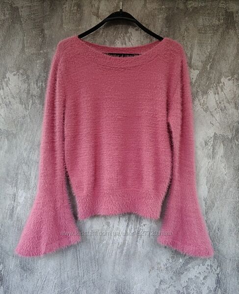 Женский мягкий пушистый свитер. Рукав с воланом внизу, предусмотрен разрез на рукаве.Вид материала: травка ангора, мягкий и приятный к телу