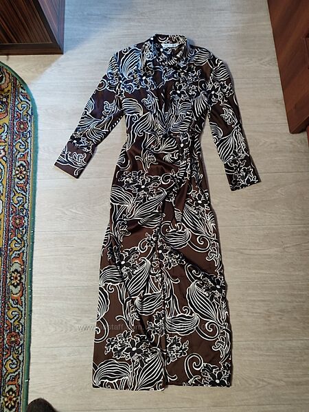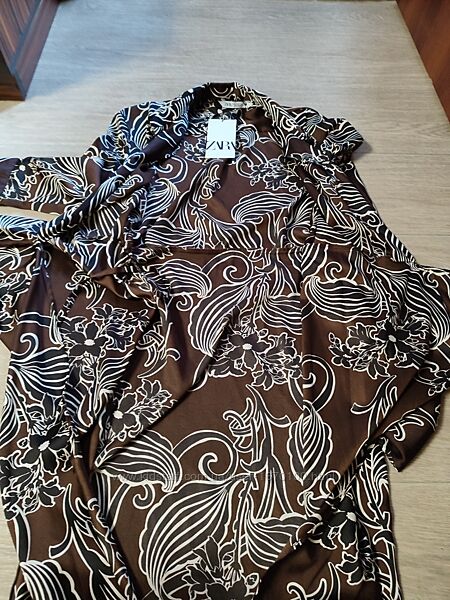 Довга сукня на запах атласна, колекція 2022, Zara, Sдовжина 130, довжина рукава 51, нот +-35, ног 44, плечі 48