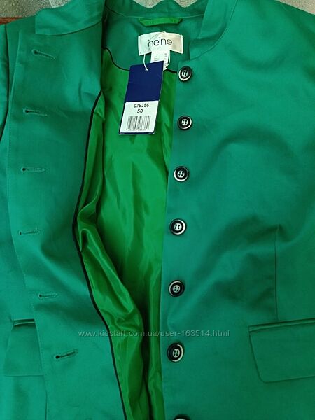 Женский удлинённый френч жакет со стойкой heine изумрудного цвета 58-60-р