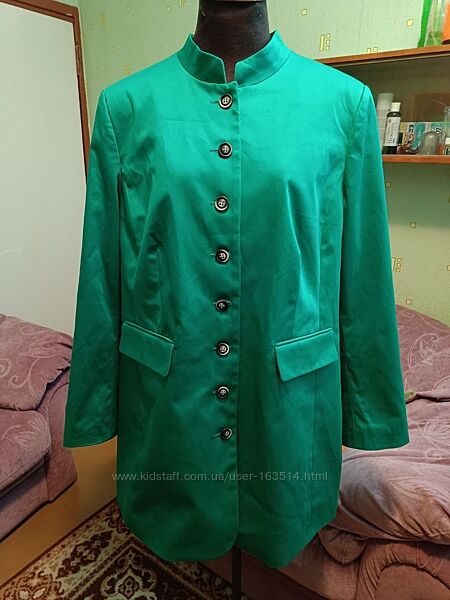 Подробное описание: Женский удлинённый френч жакет со стойкой heine изумрудного цвета 58-60-р