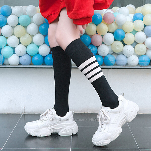 Подробное описание: Гольфи унісекс зі смужками нижче колін чорні гетри до коліна стиль аніме