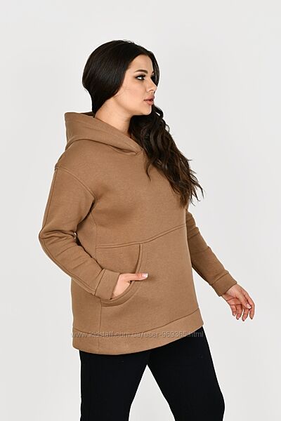 Подробное описание: Худи большого размера Одри, трёхнитка на флисе. Размеры 50-60