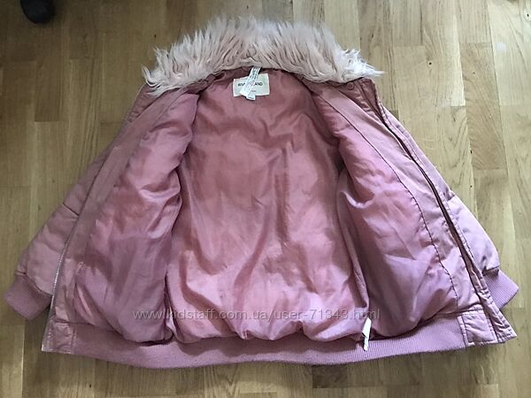 Розовая с меховым воротником (воротник отстегивается) River Island 7-8л 70грн Длина от плеча- 54см, ширина- 45см, длина рукава от плеча- 44,5-45см, чуть кошлачки на резинке, манжетах