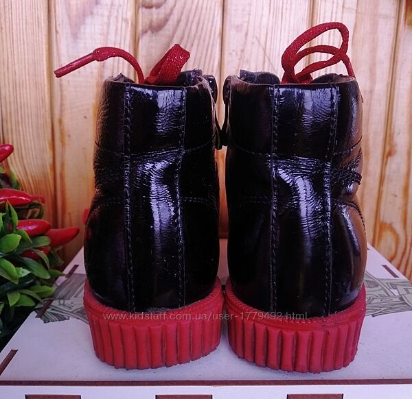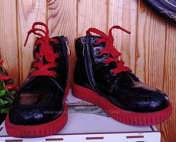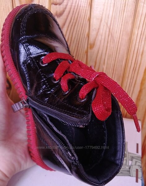 Мега классные и очень удобные в носке, ботинки (полусапожки) демисезонные для девочки.Натуральный лак(кожа)как снаружи так и внутри.Два варианта застёжки:на шнурках и молнии,что очень удобно для ребёнка и родителей!Подошва ПВХ(поливинилхлорид)не стирается,не скользит!