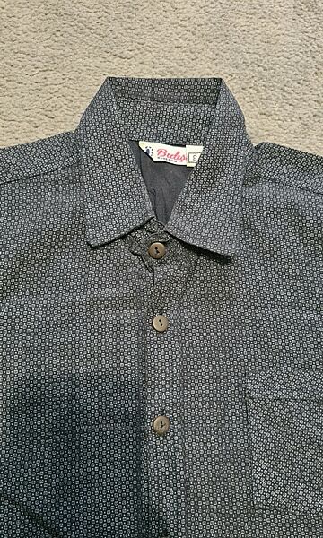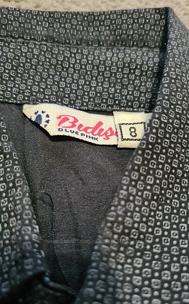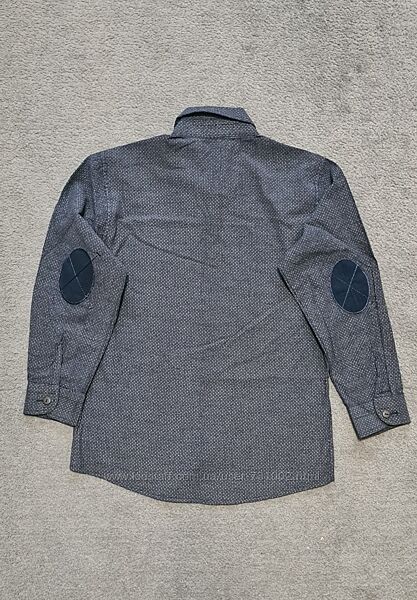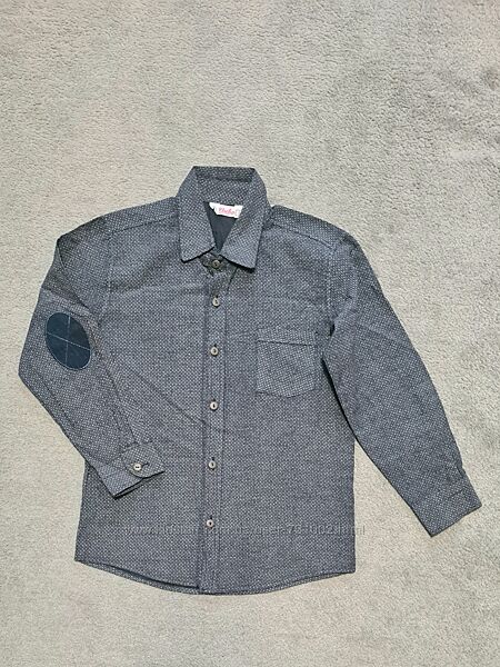 Практична сорочка прямого крою в чудовому стані. Приємна тканина з ненав´язливим принтом та акцентом у вигляді латок на рукавах.Розмір на 8 років, відповідно до виробника: