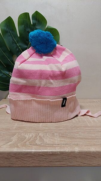 Демисезонная шапка Reima Lounatuuli.Сверху пумпон.Состав:Верх-100% хлопок. Без подкладки. На завязках. Ветронепродуваемые диски в области ушей.